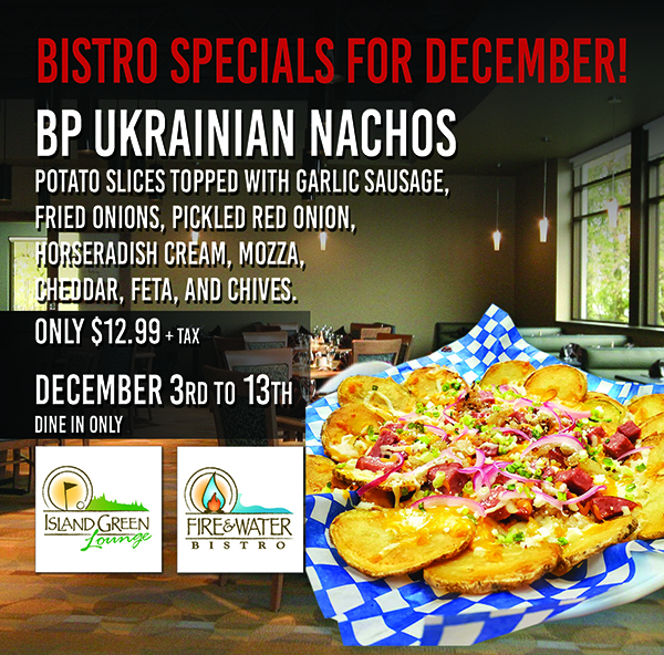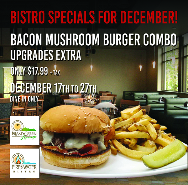 The Bistro, Lounge, Patio and VLTS are a great place to relax and unwind after a day of outdoor adventure. A delicious menu of burgers, chicken fingers, soups, poutines and more is now available!